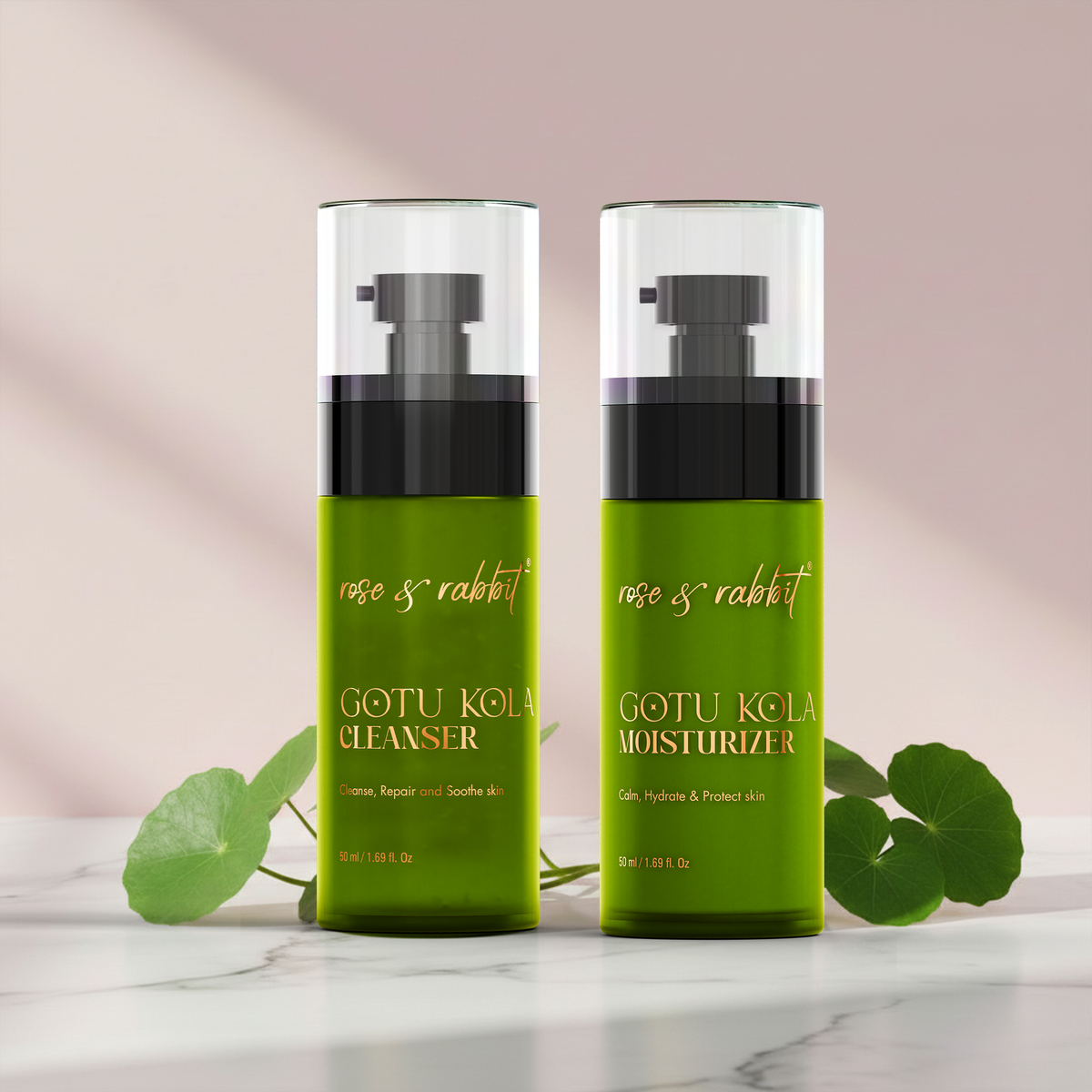 The Gotu Kola Cleanser & Creamy Facial Wash gently remove dirt & impurities, keeping your skin fresh and balanced, while the Gotu Kola Moisturiser deeply hydrates & nourishes for soft, smooth, and naturally glowing skin.
